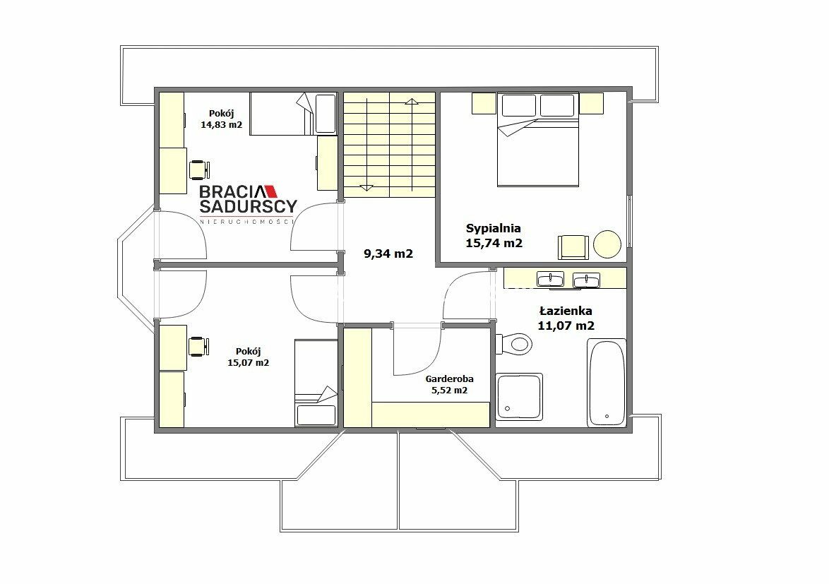 2 pokoje - po 15 m² (powierzchnia podłogi 19 m²)
